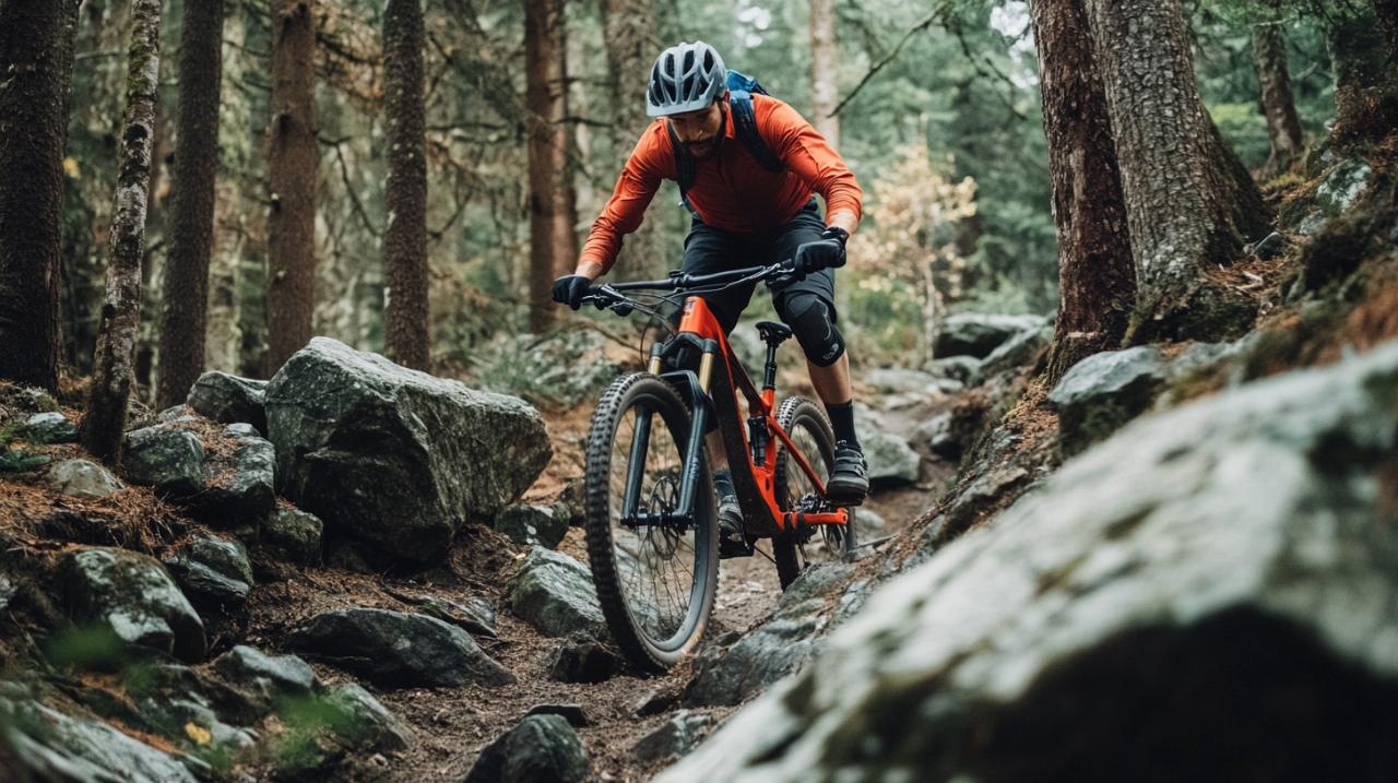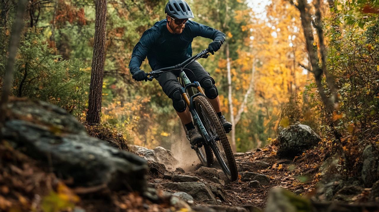 La suspension avant constitue un atout majeur du confort ressenti lors des sorties. Elle absorbe efficacement les chocs et vibrations générés par les racines, les pierres et les irrégularités du terrain. Cette capacité d'amortissement transforme l'expérience de pilotage en préservant les articulations du cycliste et en maintenant un contact optimal entre les pneus et le sol. Sur les descentes techniques, cette suspension permet de conserver une trajectoire stable et prévisible, renforçant ainsi la confiance du pilote. Pour ceux qui envisagent une pratique enduro intensive, ce modèle montrera néanmoins ses limites face à des vélos spécifiquement conçus pour cette discipline exigeante.